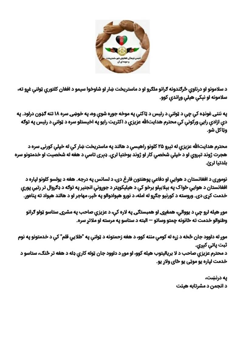 انجمن فرهنگی افعانهای شهر ماستريخت و حومه آن